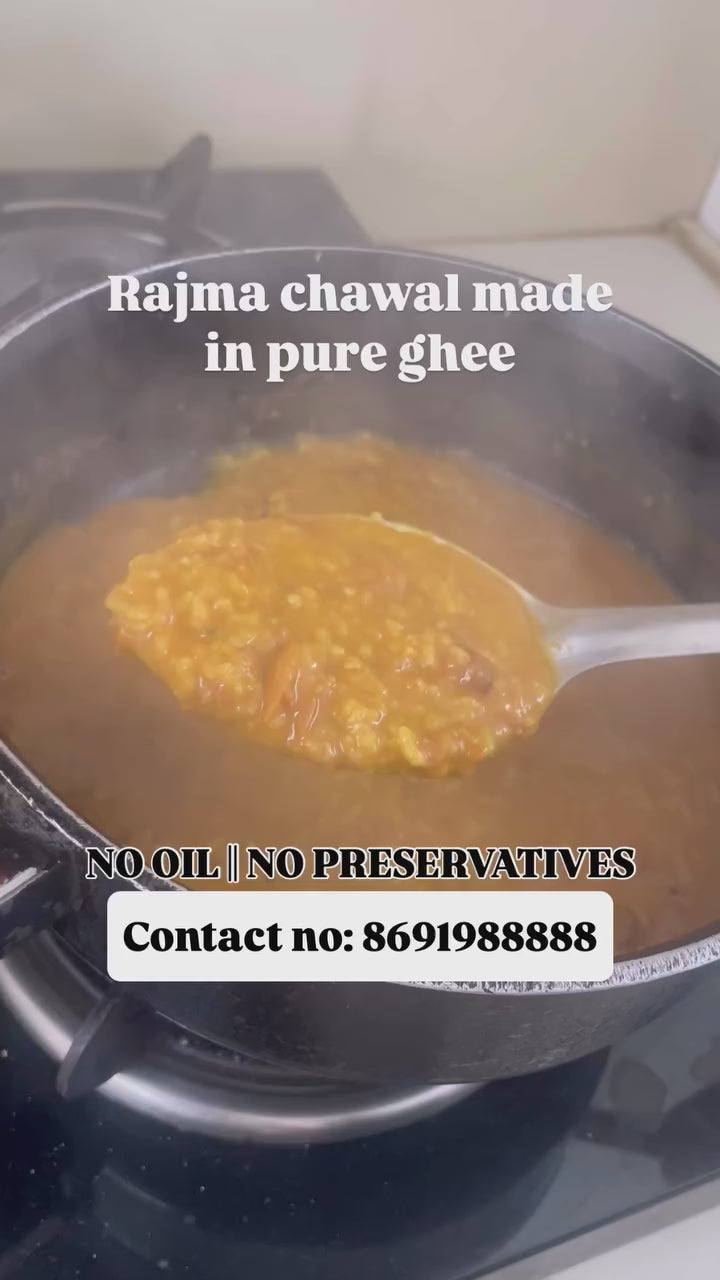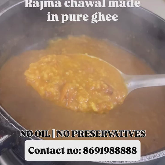 Rajma, Rice, Amul Butter, Tomato, Ginger, Garlic, Coriander Powder, Jeera Powder, Turmeric Powder, Homemade Garam Masala, Red Chillies, Iodised Salt.