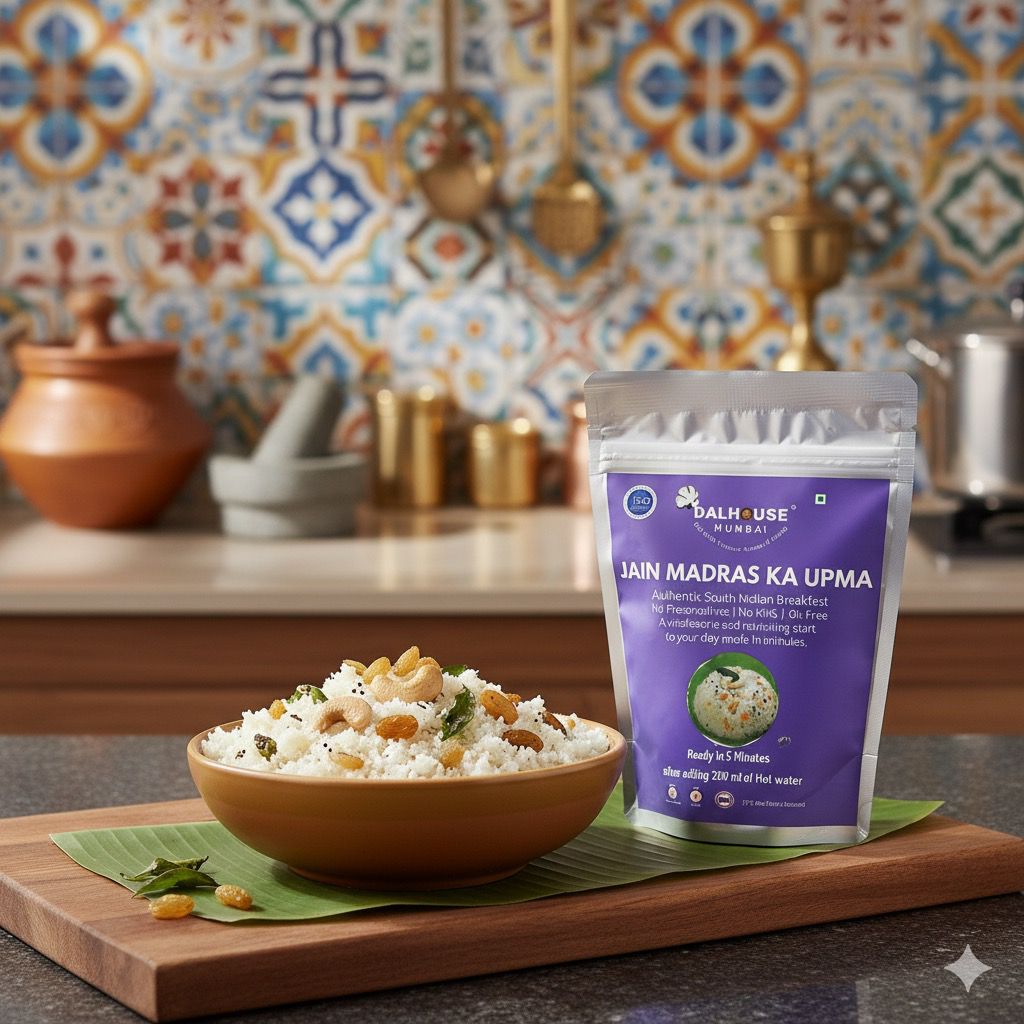 Prepared without onion and garlic, Jain Madras ka Upma is a Jain-friendly version of the South Indian classic. Slow-cooked for 2 hours with semolina, vegetables, ghee, and mild spices, it’s light, wholesome, and non-spicy – perfect for both children and adults. Ready in just 5–7 minutes.