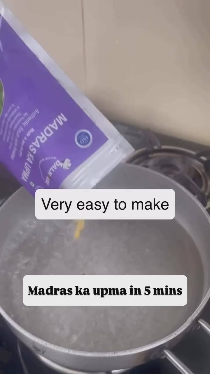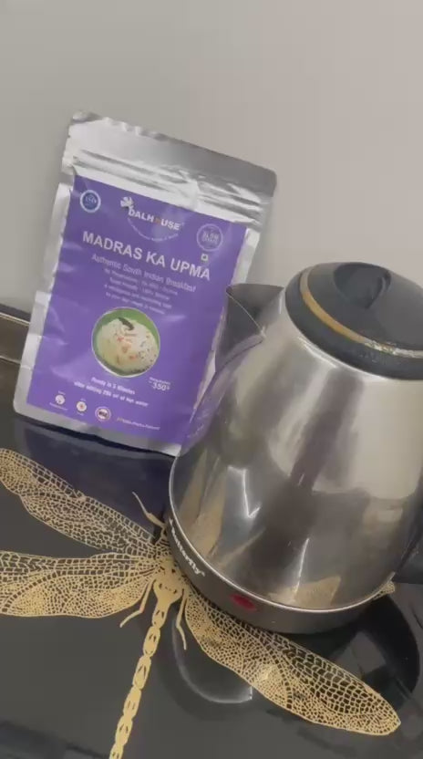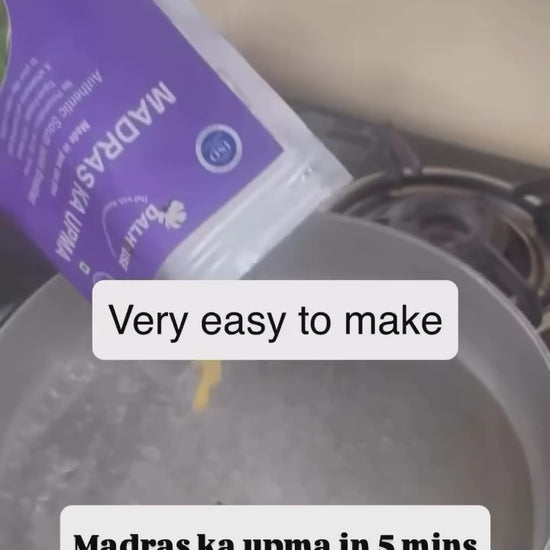 A wholesome South Indian breakfast classic – Madras ka Upma is slow-cooked for 2 hours with semolina, onions, vegetables, ghee, and mild spices. Light, nourishing, and non-spicy, it’s suitable for children and adults alike. Ready in just 5–7 minutes, this homely dish brings authentic flavors of Chennai to your plate.