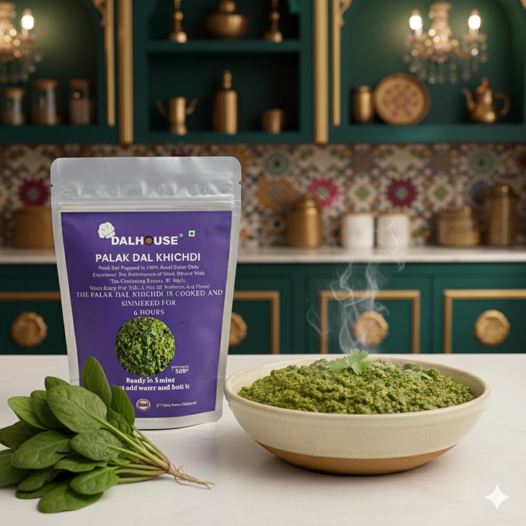Wholesome, nutritious, and comforting – Palak Dal Khichdi is slow-cooked for 6 hours in 100% cow ghee with fresh spinach, rice, and dal. This dish brings the perfect balance of taste, health, and tradition. Light, easy-to-digest, and non-spicy – making it suitable for both adults and children. Ready in minutes for a homestyle meal, anytime, anywhere.